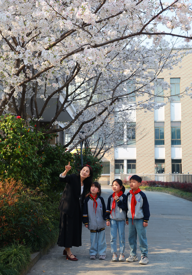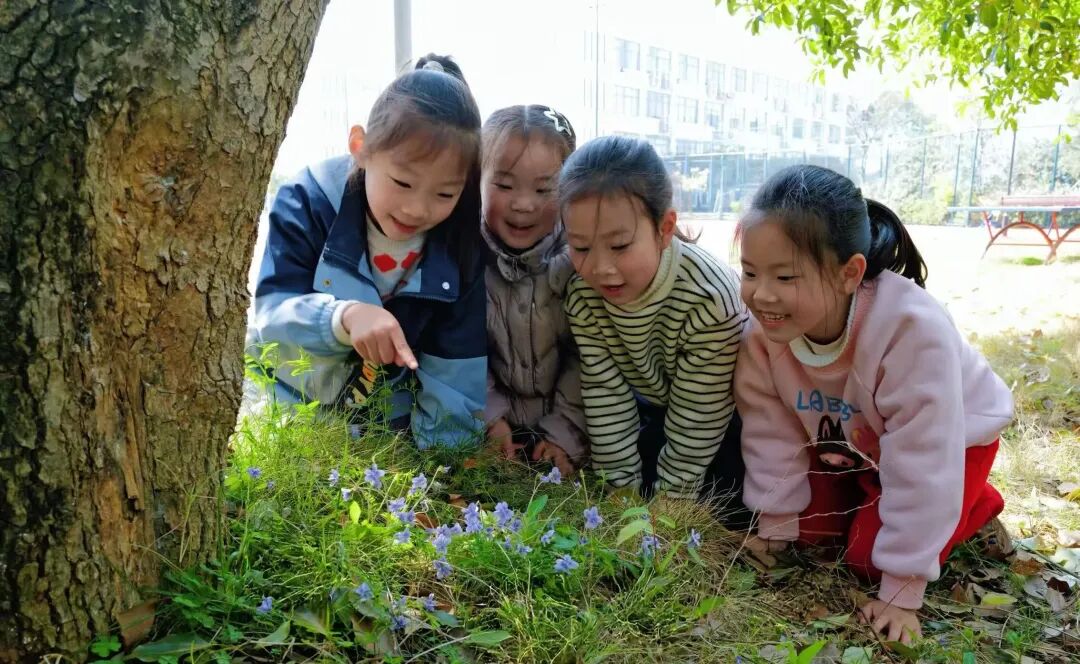 杭畴小学的同学们蹲在树下,指尖轻触破土的紫花,用好奇的眼睛发现生命的萌动,在欢声笑语中读懂“成长”的模样。