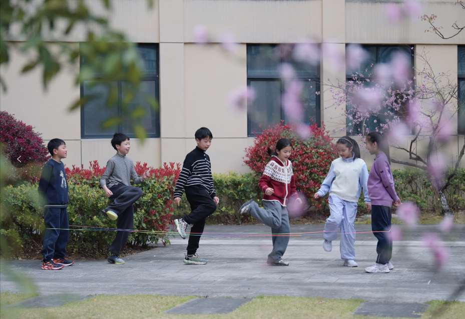 稠城三校的春日里,孩子们的欢声笑语伴着皮筋跃动的节奏,与烂漫春光一同勾勒出校园最生动的模样。