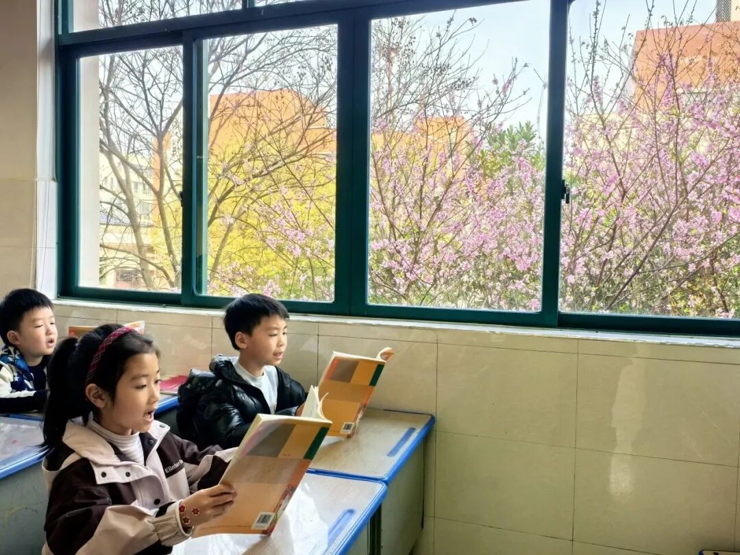 窗内书声琅琅,窗外繁花满枝,西江小学的孩子们伴着春光认真朗读。