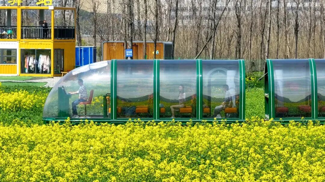来龙沙湾邂逅超治愈的春日花海,风一吹花浪翻滚,把春天的温柔与绚烂揉进慢时光里。一定要坐观光小火车,全长2.2公里贯穿花海,复古翡翠绿车厢缓缓穿行金浪间,窗外无边春色,耳边春风轻响,像闯入宫崎骏动画的治愈场景。