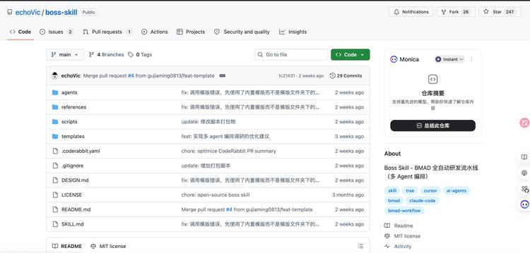 更有甚者,GitHub上已出现将“老板职能”做成Skill的项目。比如boss-skill类项目,核心并非复刻老板的语气,而是将“统筹、分工、推进、调度多角色”的管理中枢抽象为Boss Agent;而ceo-advisor这类Skill,则进一步将战略决策、资源配置、董事会沟通和组织发展等典型CEO职责转化为可调用框架。即便是老板,也能被Skill化。