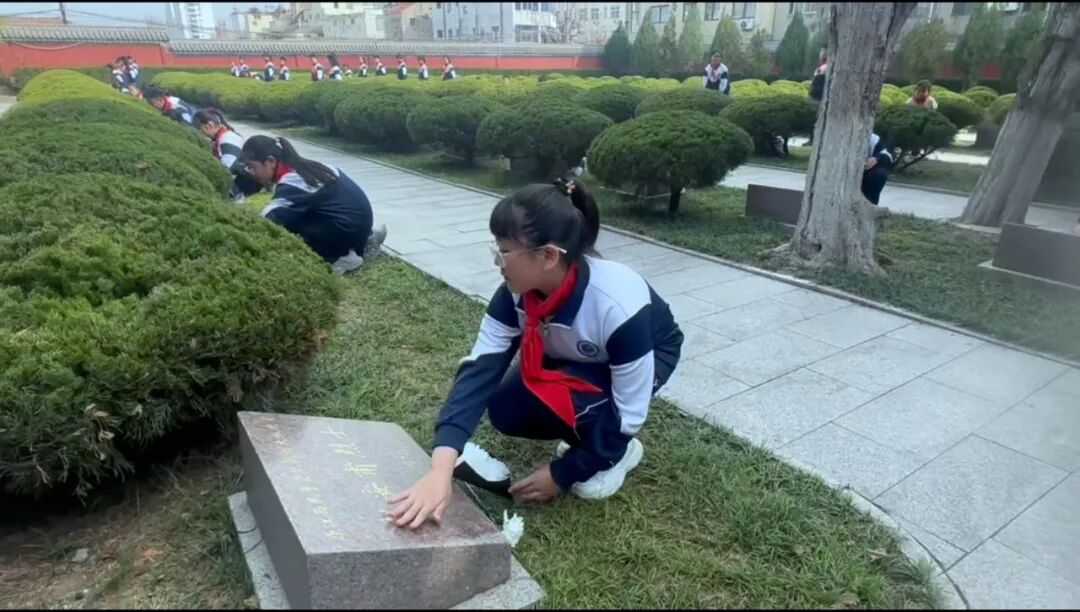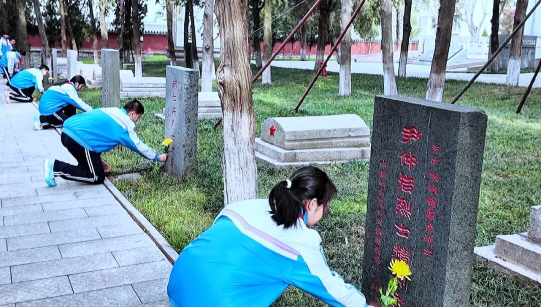 他们向革命先烈默哀、鞠躬,献上一朵朵洁白的小花,以此寄托内心深深的思念与敬意。