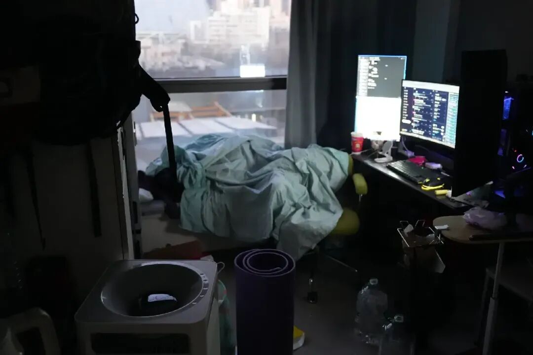 通常,Jerry早上10点就已坐在电脑前紧盯屏幕。他的床紧挨着“工位”,意味着从起床到进入“扫链状态”仅需1秒。面前的三块屏幕——中间是带鱼屏,两侧各一竖屏,这样的布局让他能高效查看社媒、监控警报,同时快速完成买卖操作。