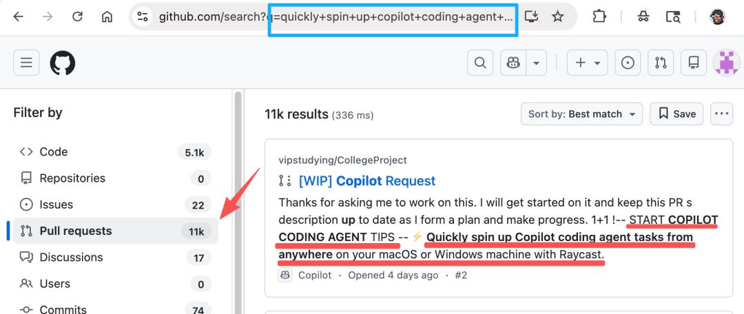 更夸张的是,用广告关键词在GitHub搜索发现,同样的文字出现在超1.1万个PR中,分布在数千个仓库。打开原始markdown文件,广告前有隐藏HTML注释“START COPILOT CODING AGENT TIPS”,这显然是预设模板,绝非AI随机生成。
