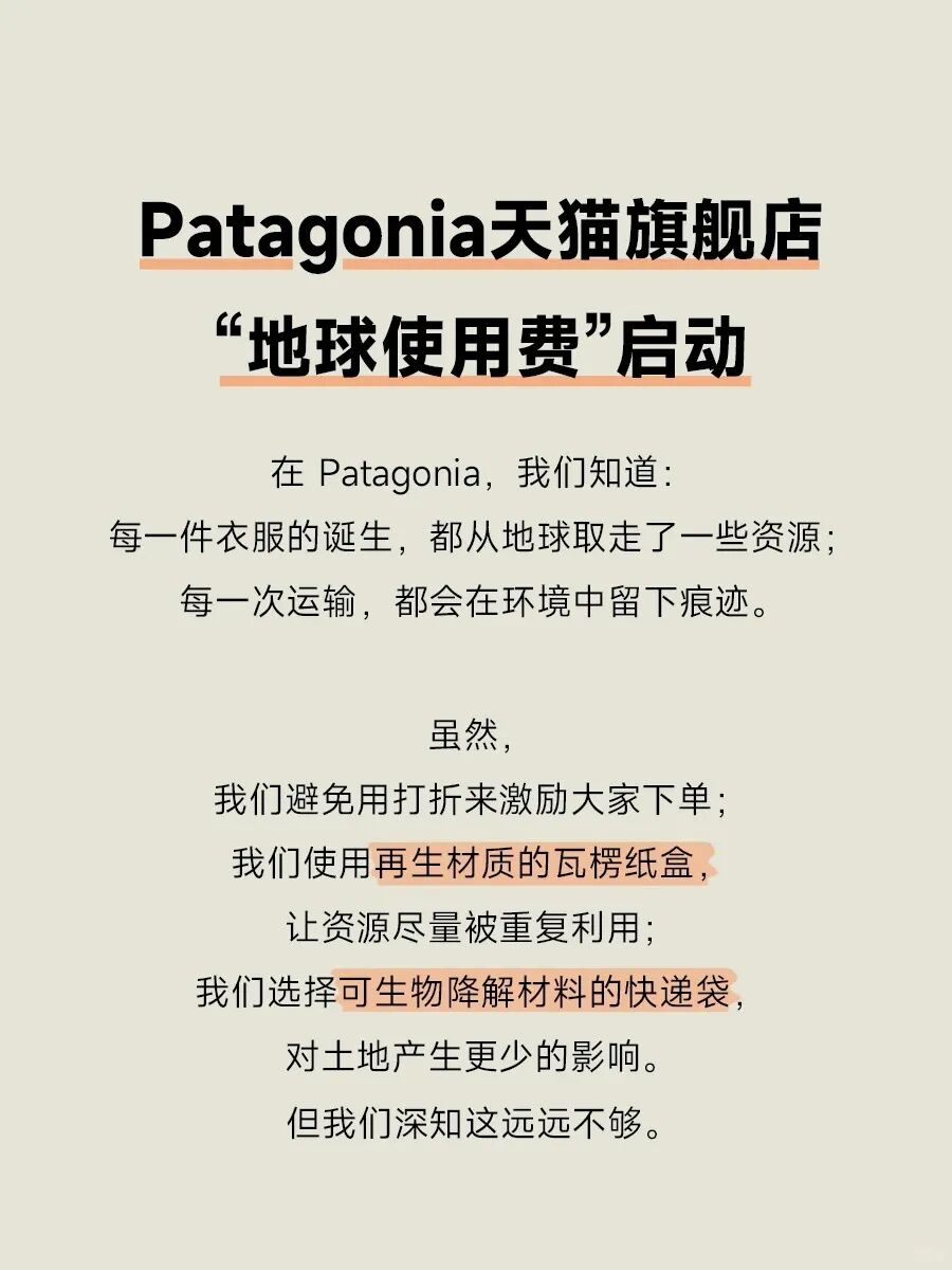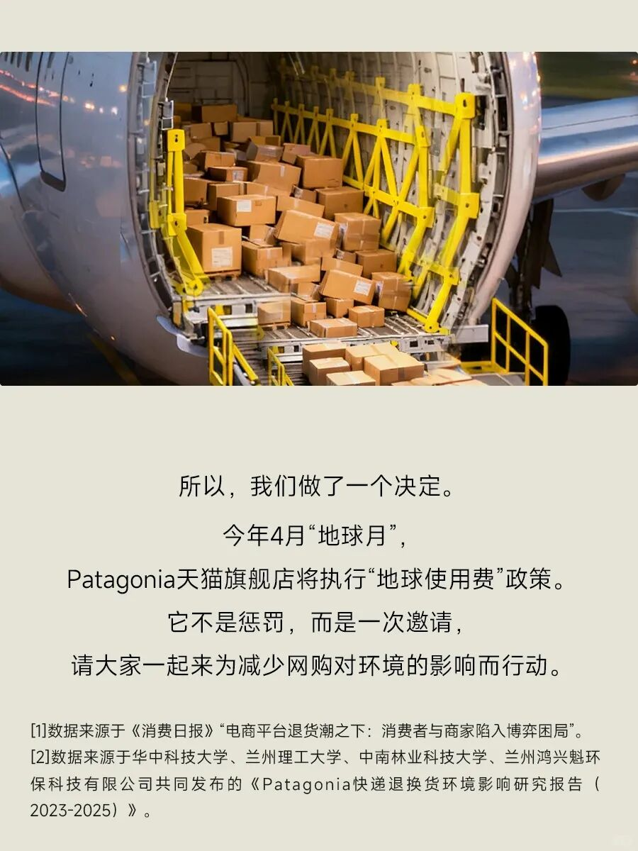 Patagonia中国代理商在天猫旗舰店推出“地球使用费”新运费政策。