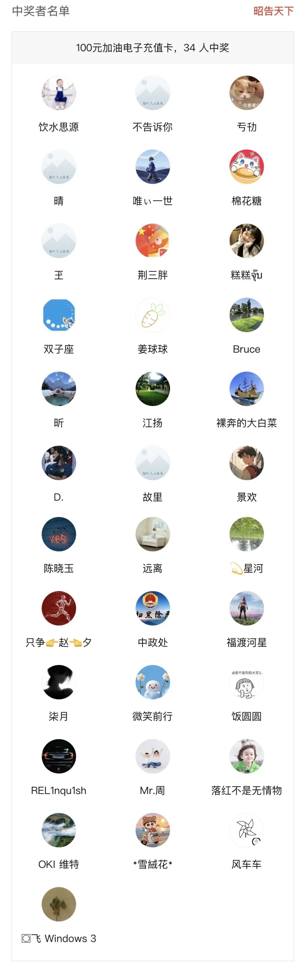 上期中奖名单公布