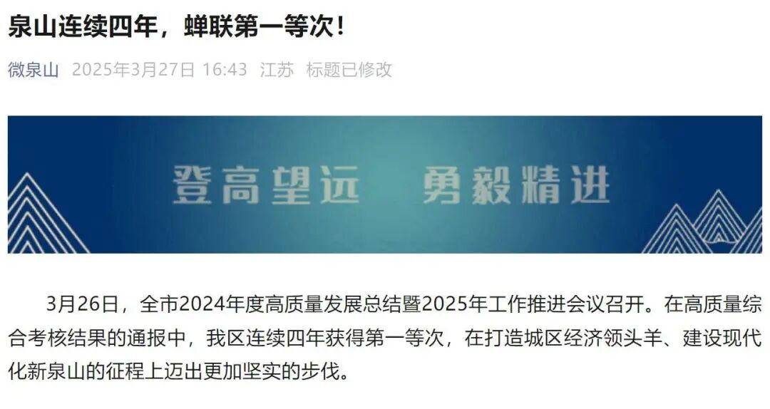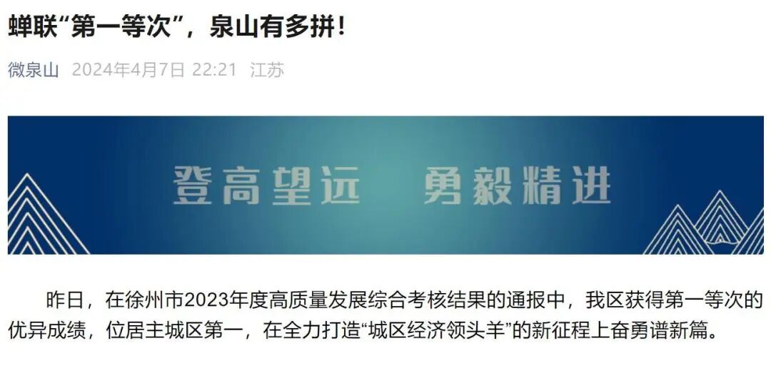 这份荣誉,是全区上下接续奋斗的成果,标志着我区圆满完成“十四五”收官任务,正稳步推进“强富美高”新泉山现代化建设新篇章。