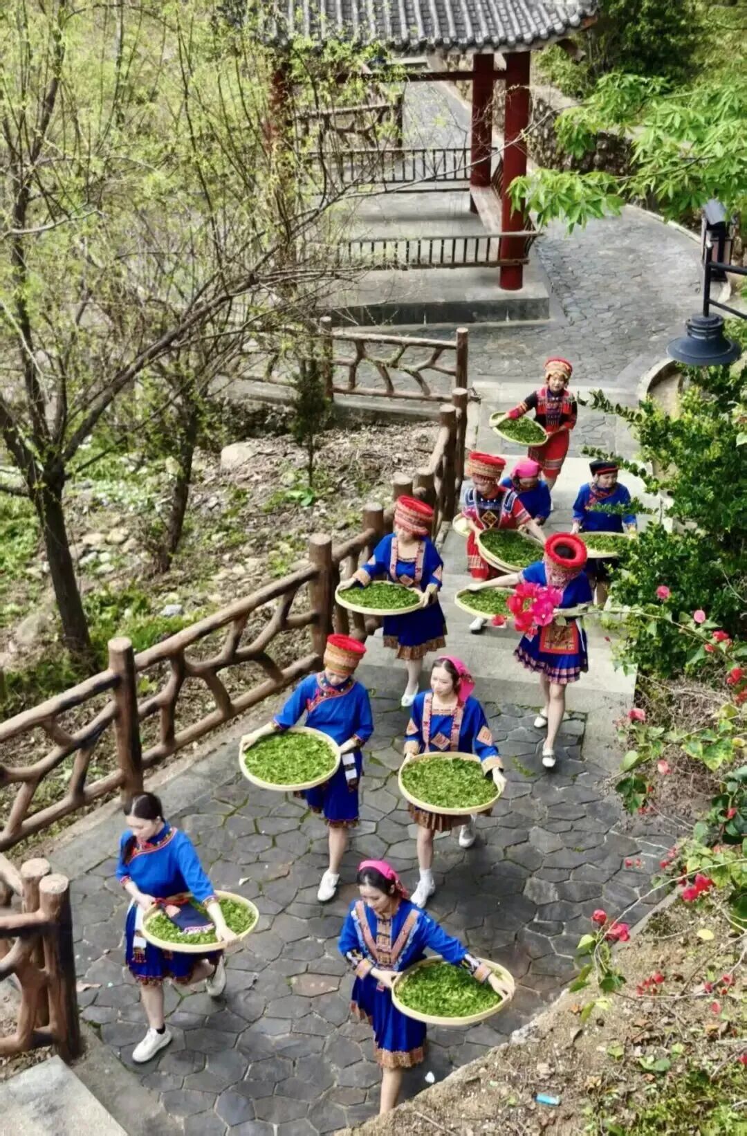 在半岛茶园,响亮的喊山声再次拉开开采序幕。身着古风服饰的采茶姑娘指尖翻飞,在明前嫩芽的簇拥下,宛如一幅《春茶集美图》。