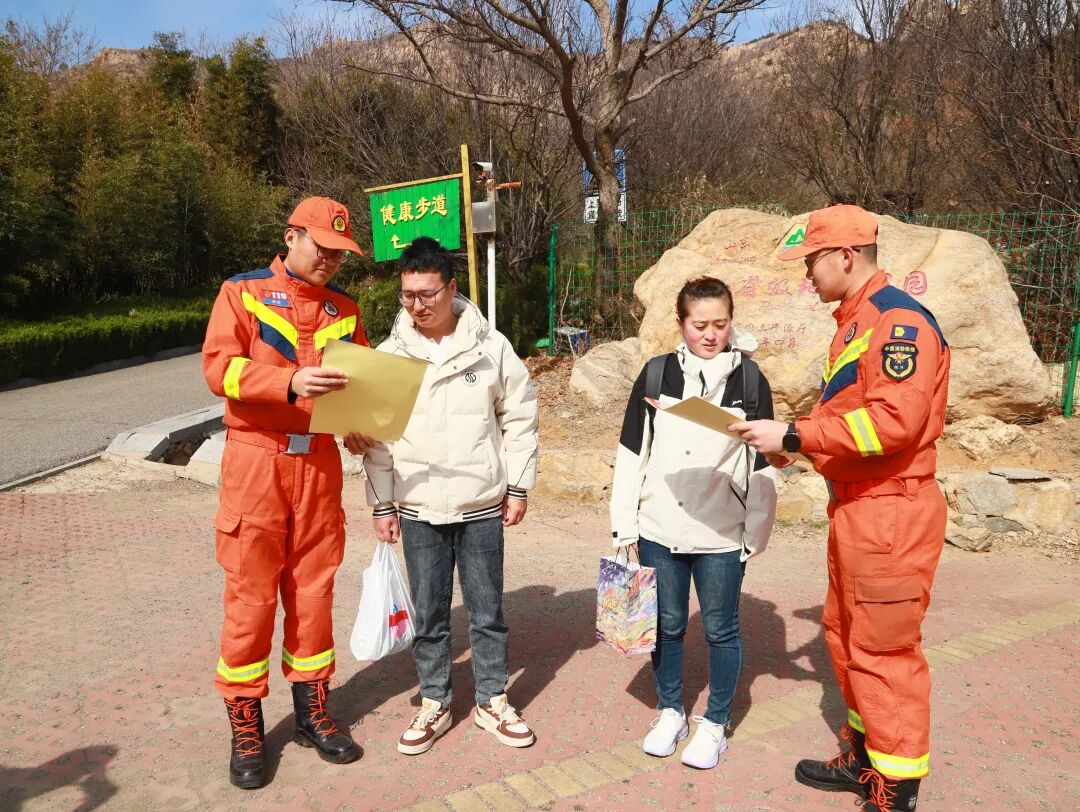在日照五洞府景区,消防救援人员重点排查林区、墓地等区域的火灾隐患,检查防火设施和消防通道,督促整改易燃物堆积问题。消防志愿者化身“防火宣传员”,通过文明劝导、现场讲解、发放资料等方式,向游客普及防火知识。