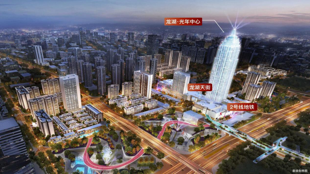 龙泉驿区驿都大道上,218米高的龙湖光年中心即将正式亮相。作为行政学院TOD项目商业配套,它是龙湖在蓉最高地标,总建筑面积约5.2万㎡,44层,与地铁2号线无缝接驳,周边还有13号线、30号线。项目集高端住宅、商业、办公于一体,与龙湖驿都天街形成商圈联动。天街计划引入300个品牌,超50%为区域首进。光年中心按层高划分功能区:低区为餐饮、美业;中低区为酒店式公寓;中高区集聚商务办公等;塔尖为高品质酒店,融合城市天际线与龙泉山景观,配备天际会客厅等设施。