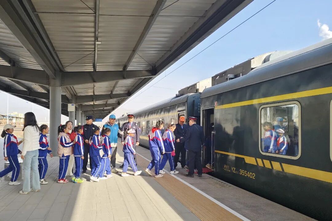 石嘴山市平罗县第四小学的448名师生,乘坐7525次列车前往大磴沟,开展以“触摸工业岁月,传承奋斗精神”为主题的研学活动。这场融合乡土情怀、铁路守护与工业传承的“行走的思政课”,就此拉开了精彩序幕。