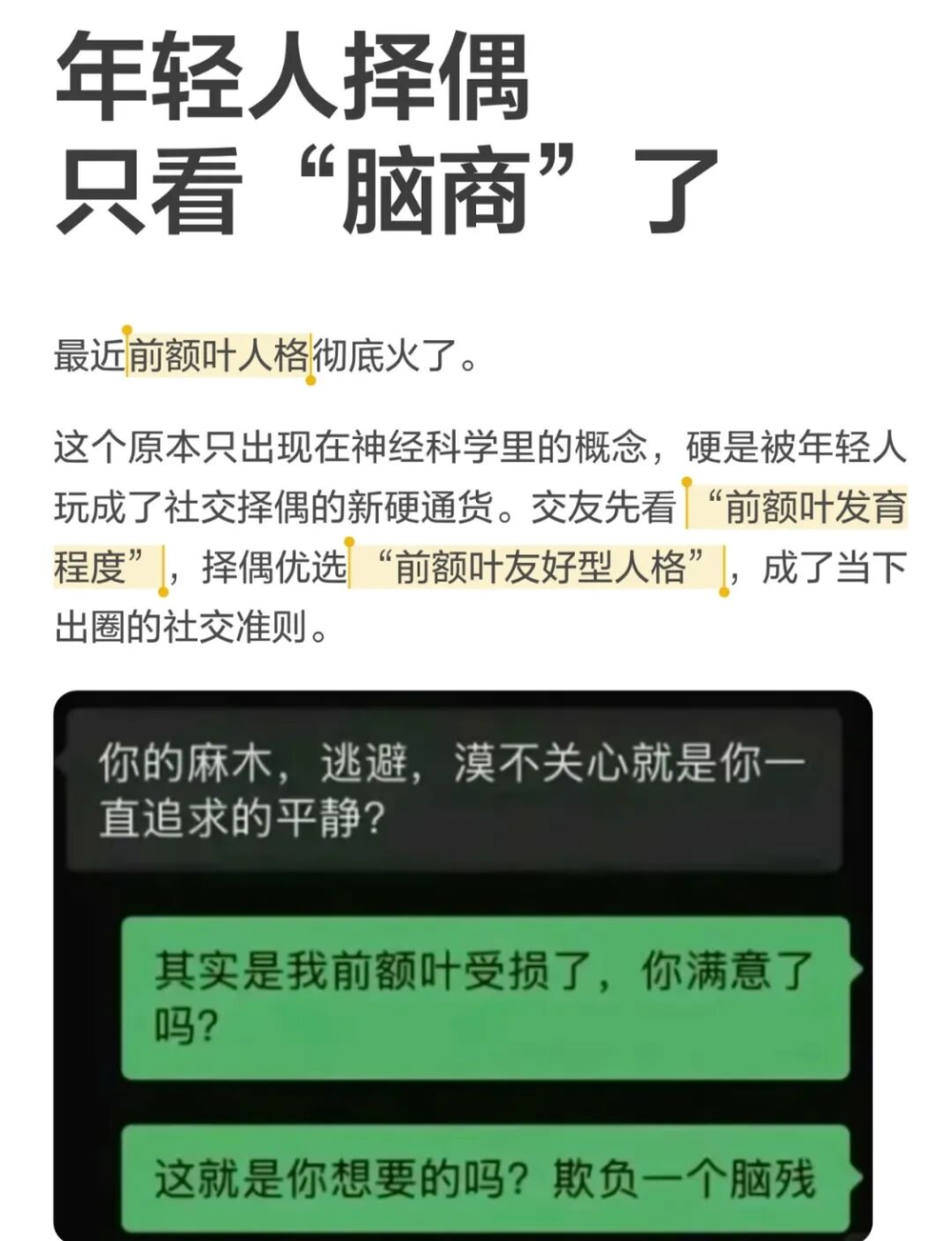 “25岁前的人在生物学上都算‘脑残’”“建议把前额叶纳入择偶标准”,这些话直接让“前额叶”这个概念破圈。