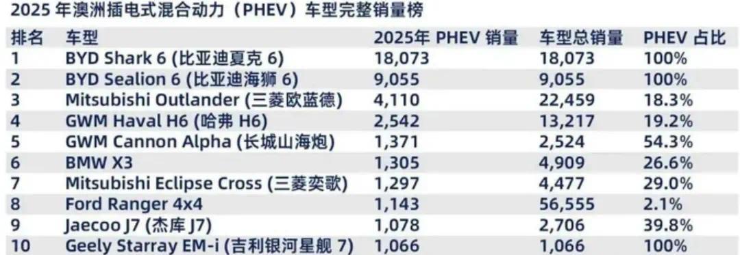 2025年,Shark 6皮卡销量超过1.8万辆,不仅成为澳大利亚最畅销的插电式混合动力(PHEV)车型,还拿下了PHEV皮卡销量冠军,被誉为澳洲“神车”。
