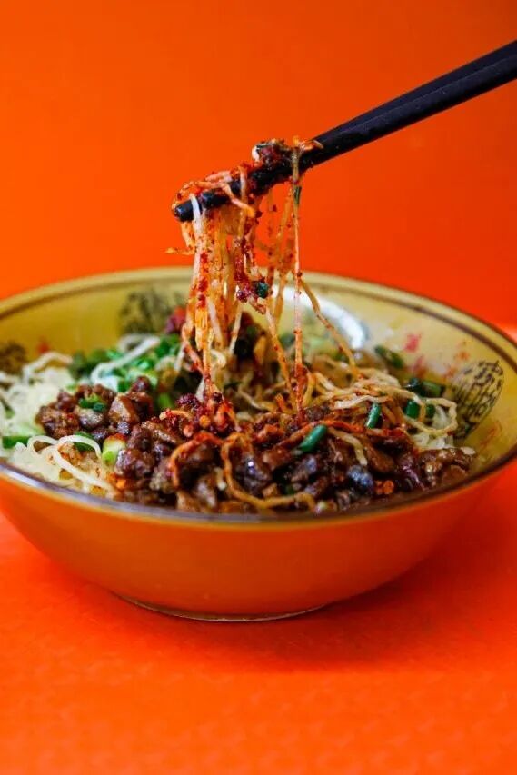 毕节的脆哨面也不容错过,面条细滑筋道,脆哨脆香回甜,撒上葱、酱、醋等调料,热油淋过辣椒面,面条裹着油香,搭配骨头汤大口吃下,又香又解腻。