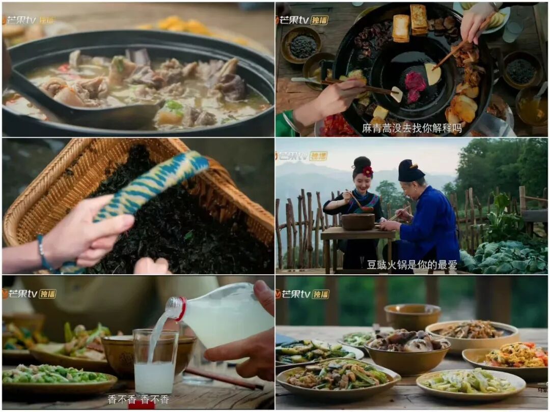 电视剧截图里,衮月亮最爱的豆豉火锅、麻青蒿爱吃的辣子鸡、“乌蒙三棵草”畅饮的水花酒,还有酸汤鱼、腊肉、腊猪脚、烙锅、地皮菜、黄粑、五彩糯米饭等,这些美食在毕节都能轻松吃到。