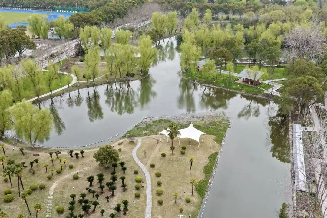 设计秉持“还绿于民”理念,紧扣校区、园区、城区一体化发展要求,针对场地封闭闲置的现状,以“穿林之径,憩水之滨”为主题,通过拆围透绿、梳理空间,打造校社共享的游憩枢纽。上经贸大负责人表示,这是学校落实政策、发挥社会服务功能的体现,后续将与松江区相关部门明确安全、卫生、绿植维护等管理责任,做好公园管护。