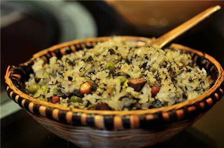 社饭是铜仁极具代表性的小吃,以青蒿、野蒜与腊肉拌入米饭翻炒而成,是春社祭祀的专属美味,藏着山野的鲜活气息。