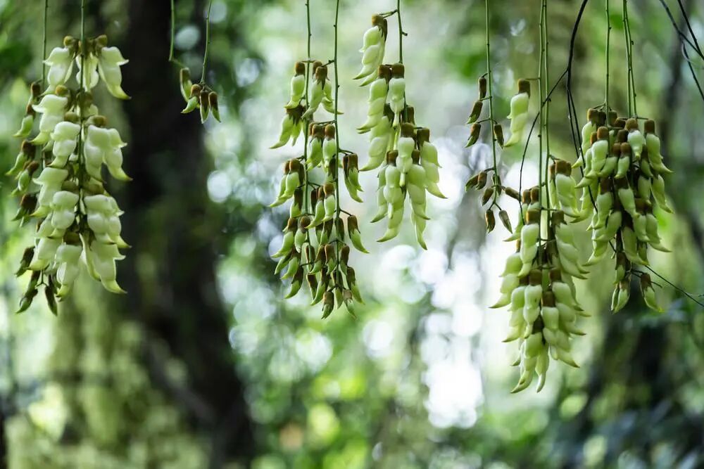 山林间,禾雀花正悄然绽放。一簇簇、一串串悬挂在老茎上,宛如报春的雀鸟栖息在藤蔓间,在雨中低诉着春日的思念。