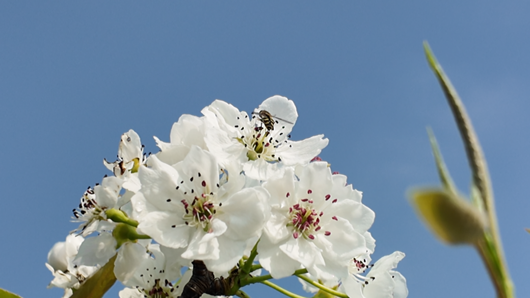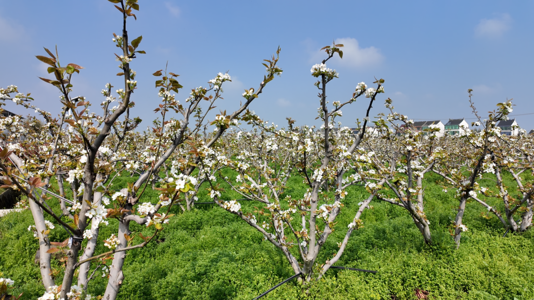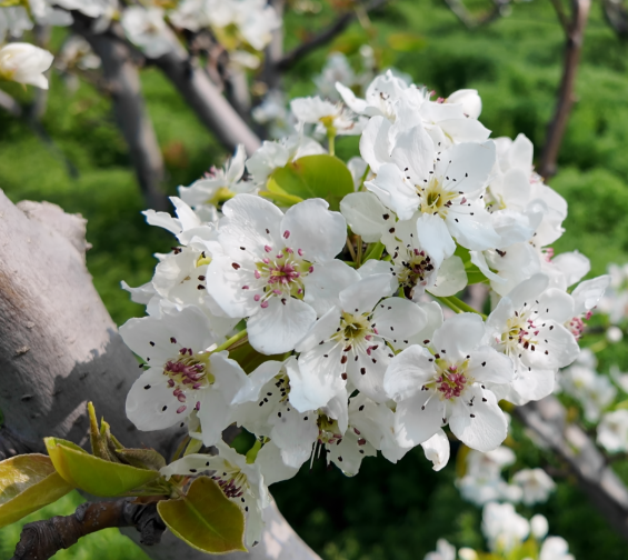 3.梨花全为白色,有多个柱头,花药呈红色;