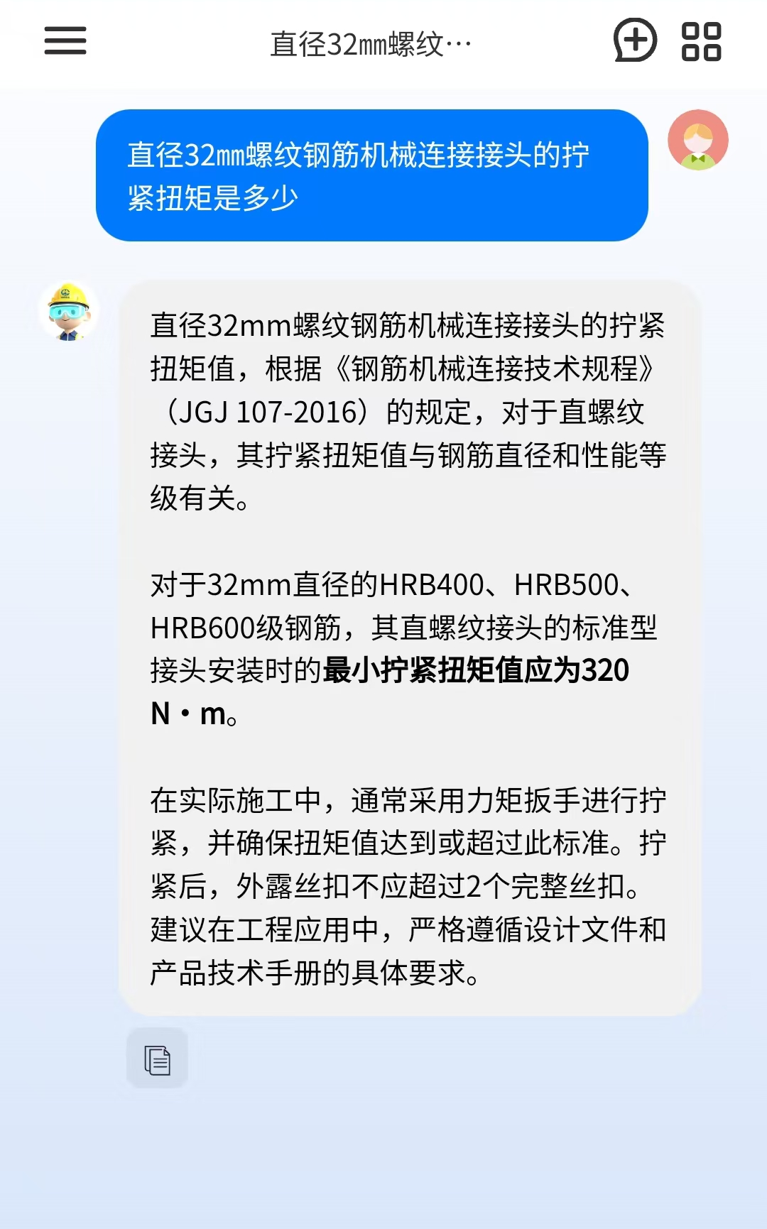 “直径20毫米螺纹钢筋的135°弯钩加工制造要求”——钢筋车间王师傅熟练地向桥头堡智能问答助手“求助”。“这个助手能帮我们解决记不住规范数据、图纸数据的问题,避免因数据不准导致返工,提高了生产效率。”王师傅笑着说。