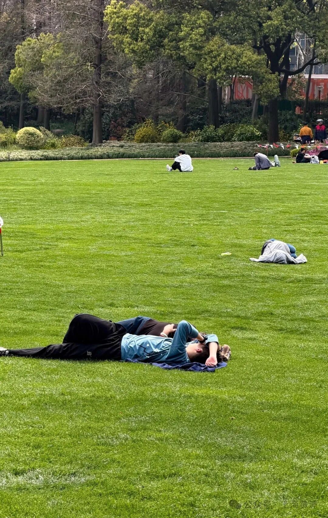 有人捧着书本静静阅读,有人带着孩子嬉戏玩闹,还有人索性什么都不做,就那样躺着,看云卷云舒。