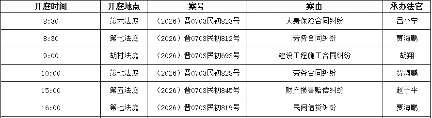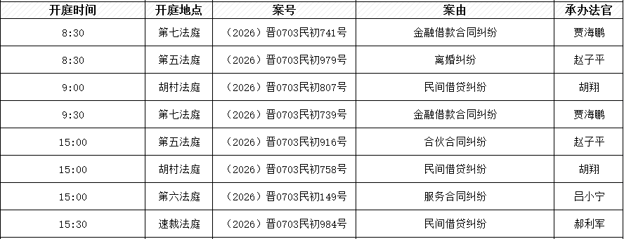 小编为大家整理了2026年4月7日至4月10日期间开庭审理的案件信息。若您的案件在列,请务必准时到庭参与庭审;若您的案件不在其中,感兴趣的朋友也可携带身份证前来旁听——除法律规定涉及国家秘密、商业秘密、个人隐私,以及当事人申请不公开审理的案件外,其余案件均公开审理。