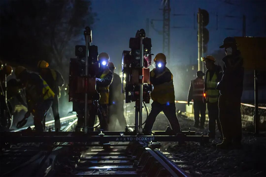 铁路集中修道岔清筛作业现场。王光辉 摄