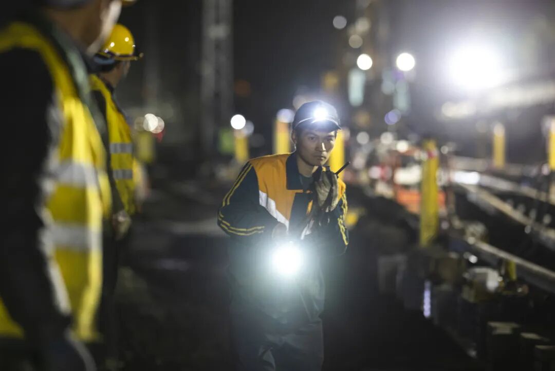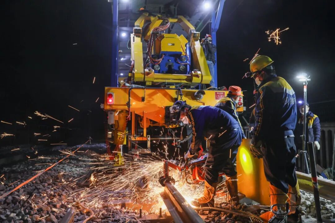 铁路职工在进行切割钢轨作业。彭飞 摄