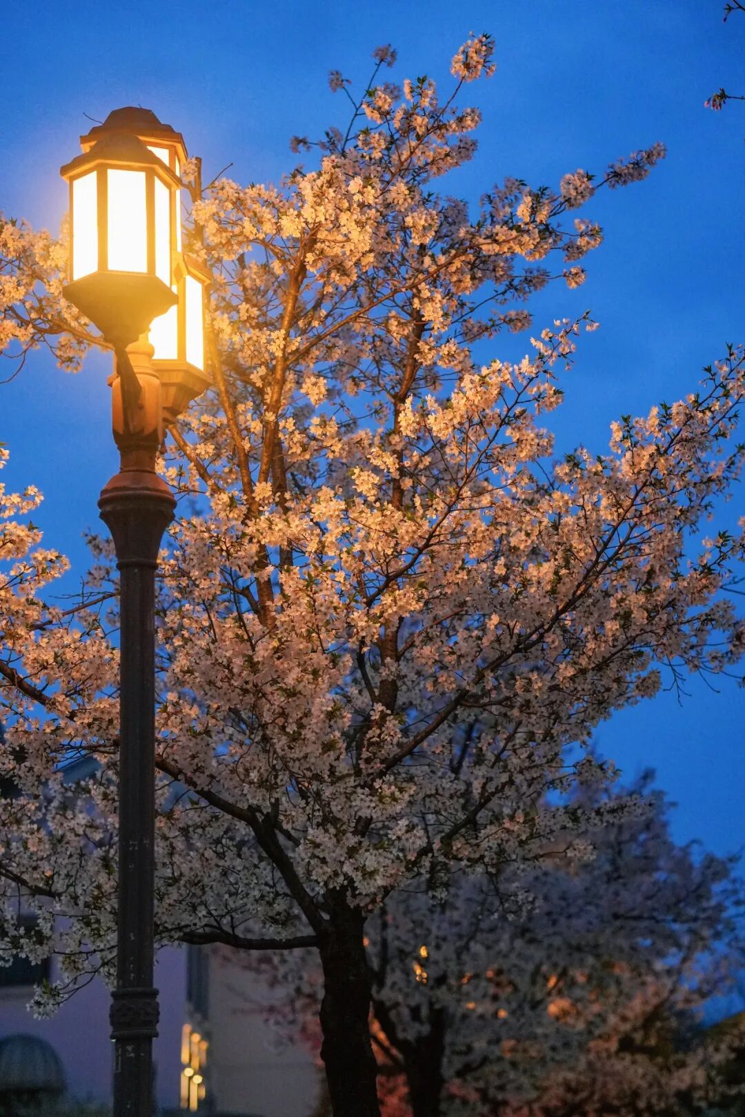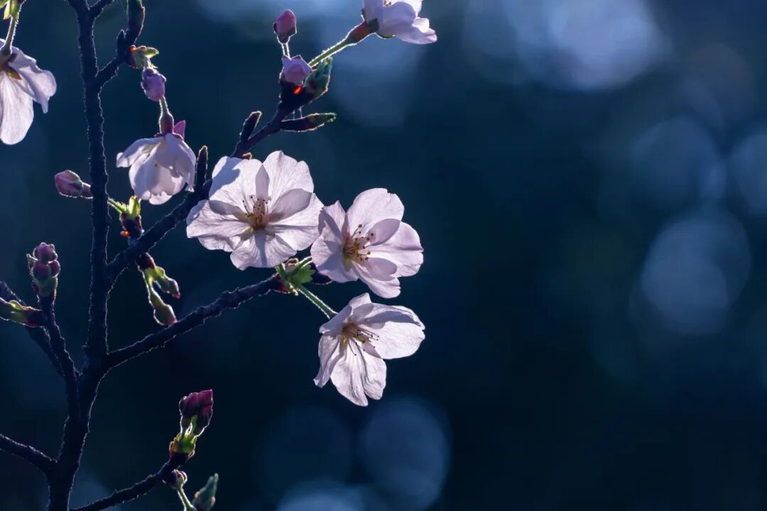 蓝调天幕下,花不再是粉白娇柔,而染上幽蓝的梦境之色。