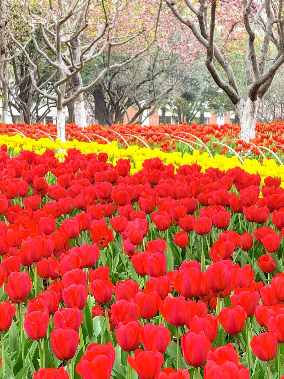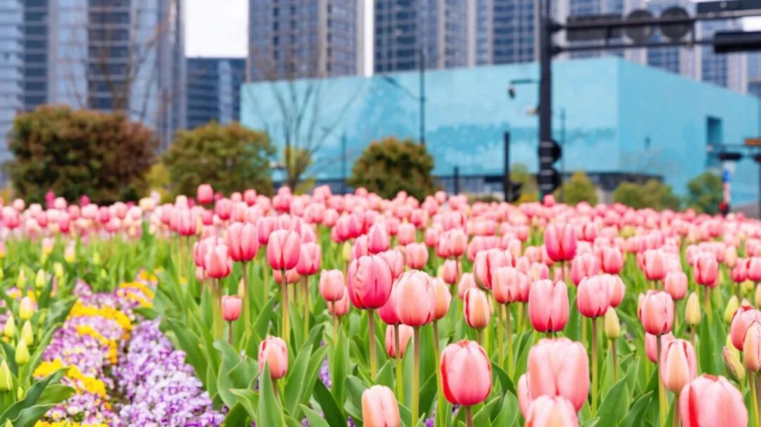 是“最美绿化带”里铺开的郁金香花海,美到让人误以为闯入婚礼现场。