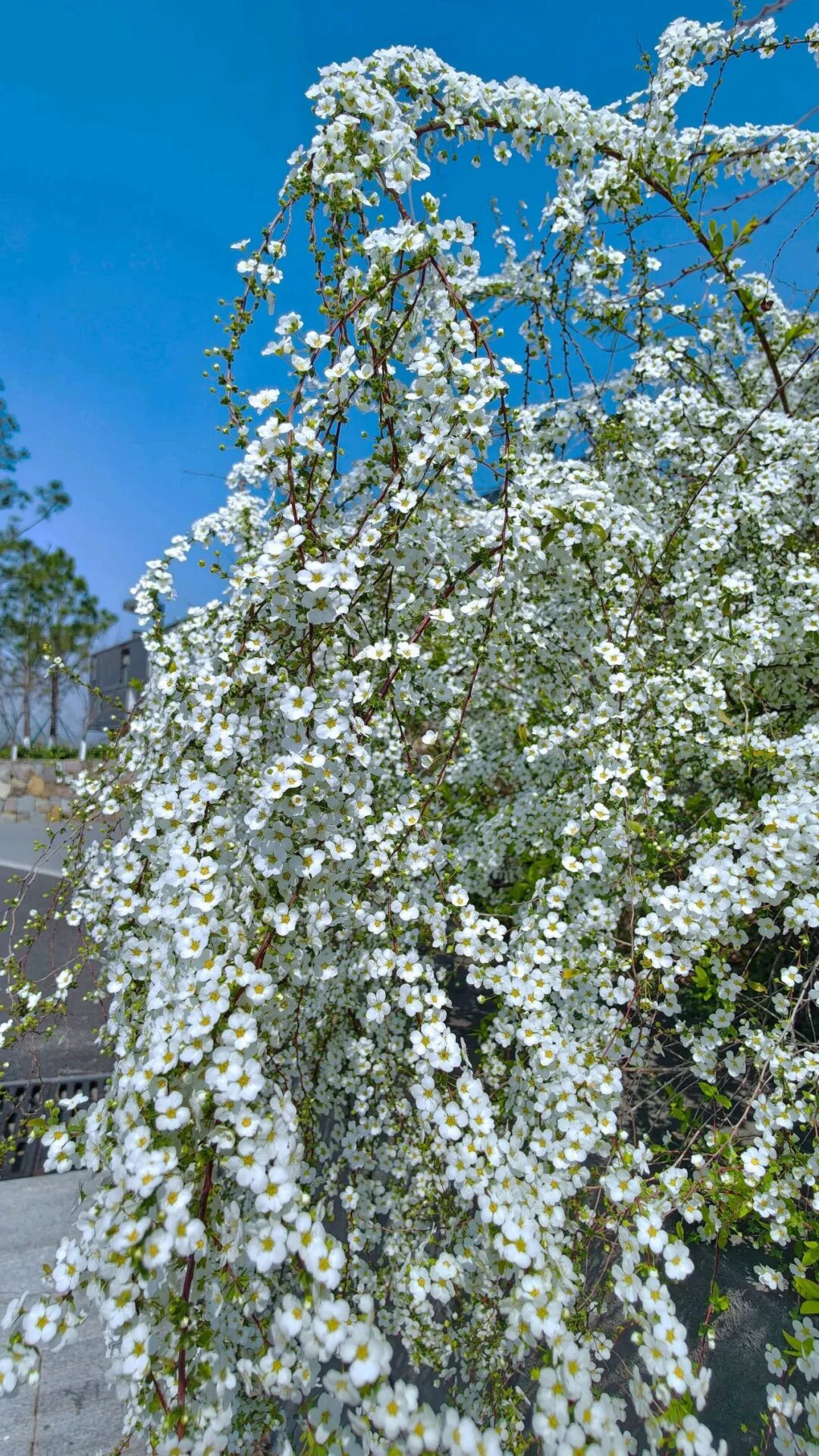 湘湖定山岛上雪柳绽放,细密花瓣缀满枝头,远望如云,近看似玉,携春之生机盛放于大地。