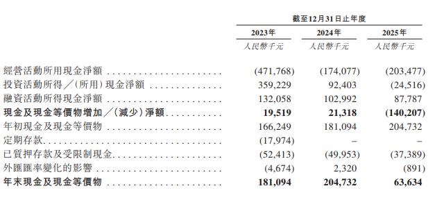 截至2025年底,其现金及现金等价物仅约6363万元。