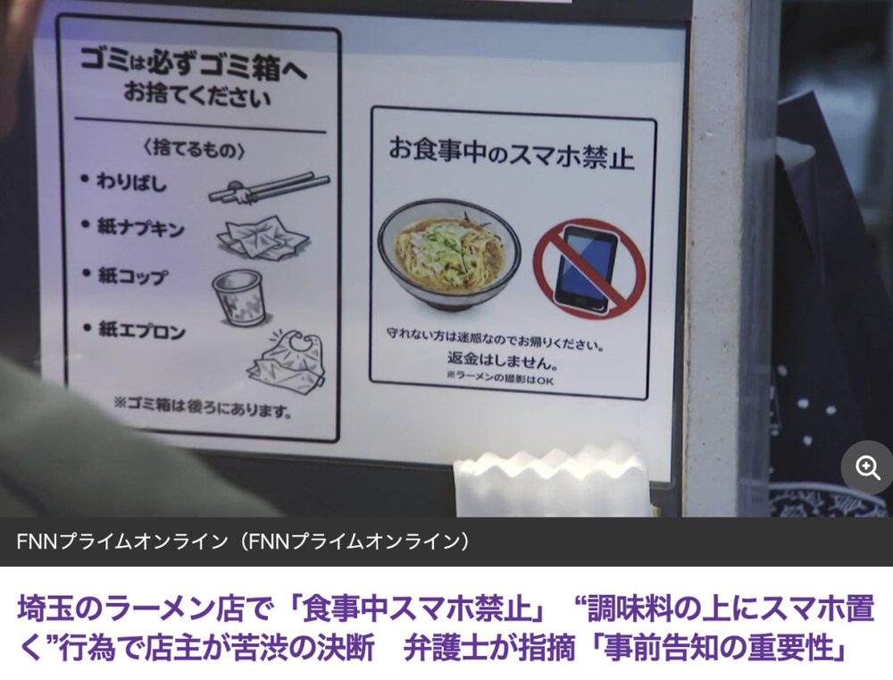 有朋友给我发了张图,说日本有家拉面店规定顾客吃饭时不能玩手机,一旦违反就会被赶走,而且不退款。