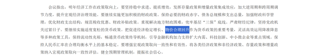 2025年中央经济工作会议明确,引导“物价合理回升”是今年货币政策的重要方向。