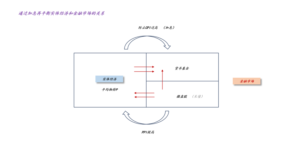 如上图所示,当CPI读数较高时,实体经济与金融市场的关系需重新平衡,央行需加息引导流动性回流金融市场,以防止实体经济流动性泛滥导致物价P持续攀升。因此,今年的货币宽松是阶段性的,当CPI触发特定条件时,货币政策需重新收紧。