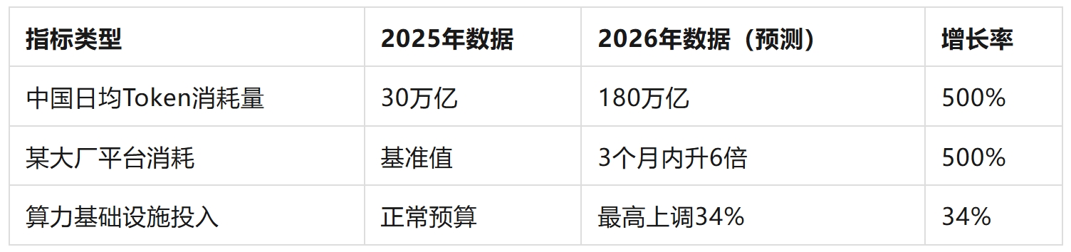稍微整理了一下,如下表所示,目前市场上的Token消耗正呈现指数级增长。