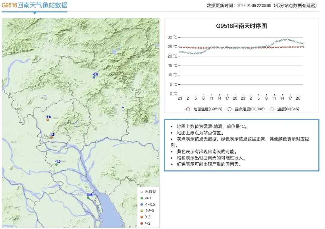 截至4月6日22时广州回南天监测情况 广州天气网截图