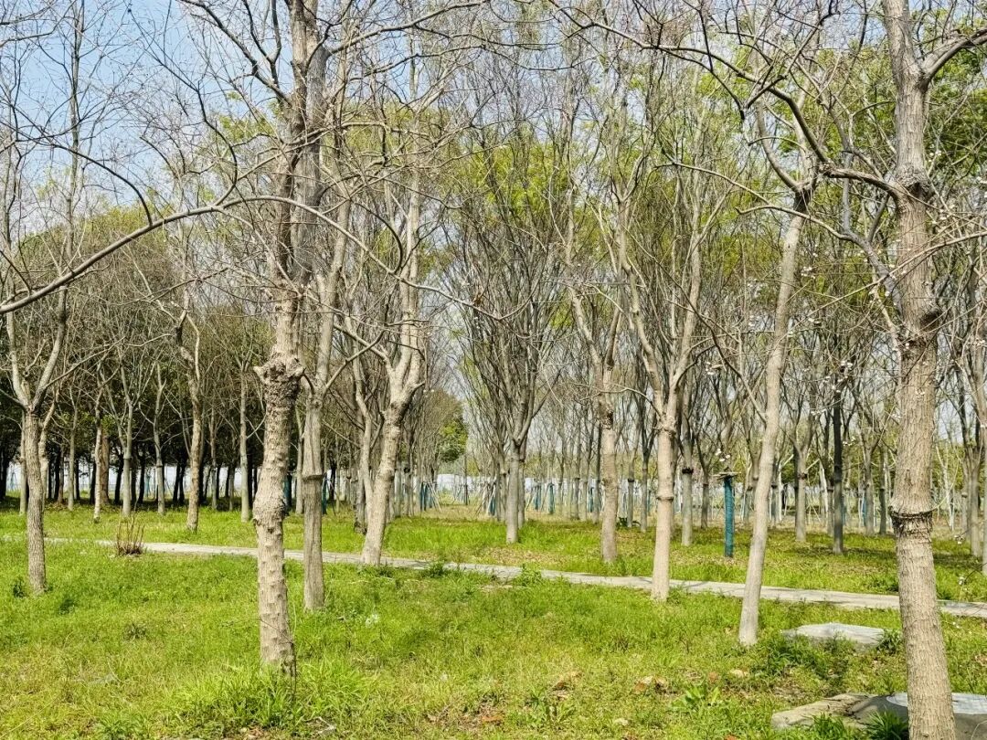 记者来到新泾村生态廊道,映入眼帘的是一片绿意盎然的景象:榉树、梧桐、水杉等树木高低错落,阳光穿过枝叶洒下,形成一片片斑驳的光影。