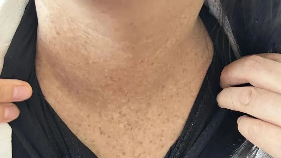 一年前,陈女士照镜子时偶然发现脖子似乎“变黑”,以为是防晒不到位,并未放在心上。但随着时间推移,脖子的黑斑不仅加重,还蔓延到四肢,手掌、脚底也长出粗糙硬茧,稍作剧烈活动就气短乏力。察觉到异常后,她赶紧前往医院就诊。