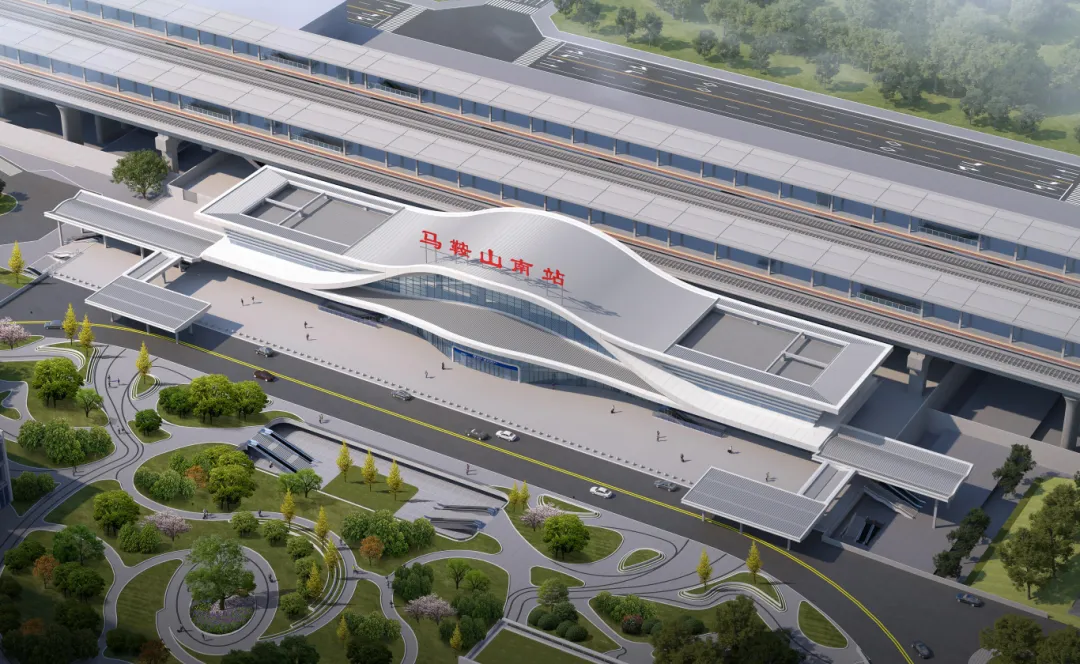 马鞍山南站为新建站房,总建筑面积11998平方米,主要涵盖站房建筑结构工程、装修工程、给排水及消防工程、通风与空调工程、建筑电气工程等。站场规模为2台6线,设有岛式站台2座,以及站台雨棚结构及装饰。
