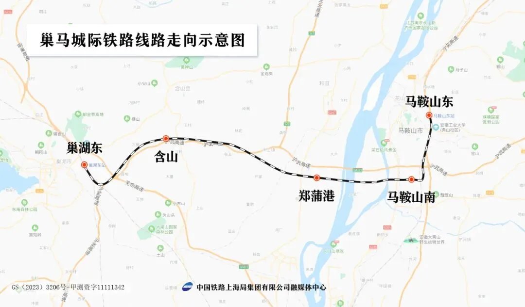 含山、郑蒲港、马鞍山南为新建车站。
