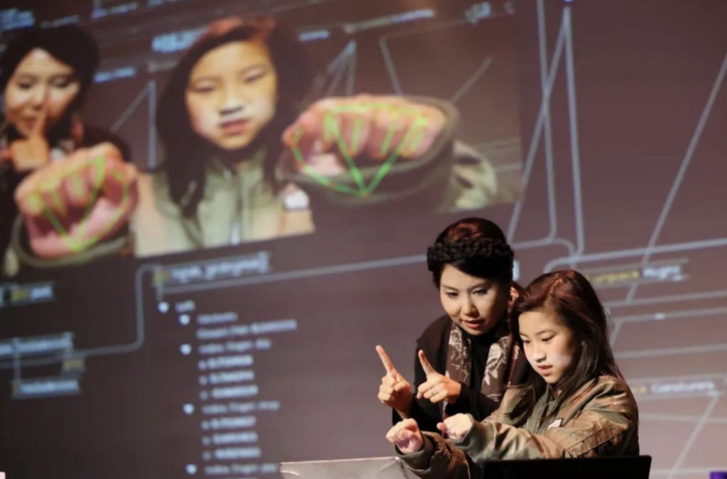 AI浪潮来袭一年左右时间,产出的音乐作品已经要用“天量”来形容。图为2025年“数字缪斯——音乐科技融创节”展览现场,借助AI动作捕捉模型,观众用手势生成音乐。图片来自微信公众号“上海黄浦”。