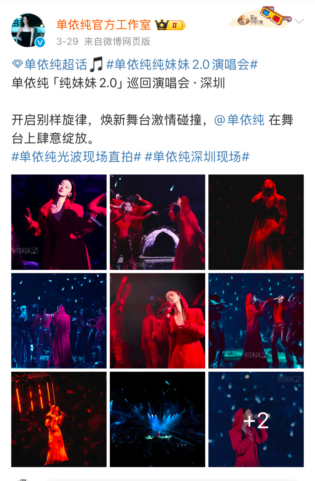 “开启别样旋律,焕新舞台激情碰撞”,李荣浩微博维权第二天,单依纯深圳演唱会第二场最后演唱了新作《光波》。