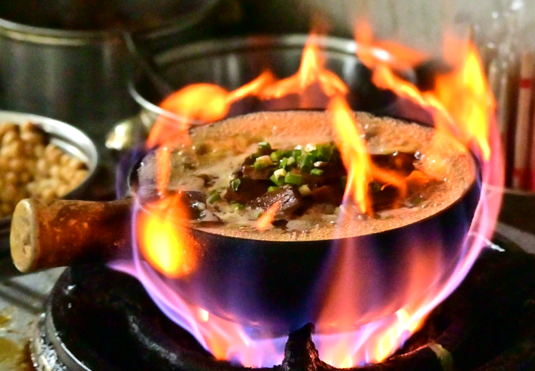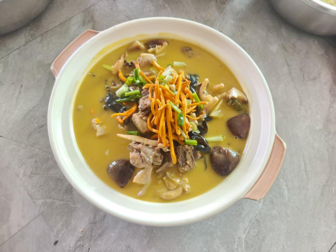作为当阳烟火气十足的早餐聚集地,群力农贸市场早餐一条街的特色早点丰富多样。河溶毛军牛杂传承三十余年手艺,牛杂锅汤底醇厚、牛杂软糯,冻鱼、扣肉、蒸蛋各具风味;正宗土家酱香饼金黄酥脆,裹满秘制酱料,咸香微辣,外酥内软,酱香浓郁。