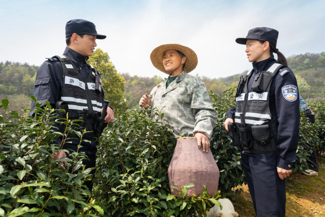 庐江茶园迎来采摘高峰期,民警开展平安宣传。