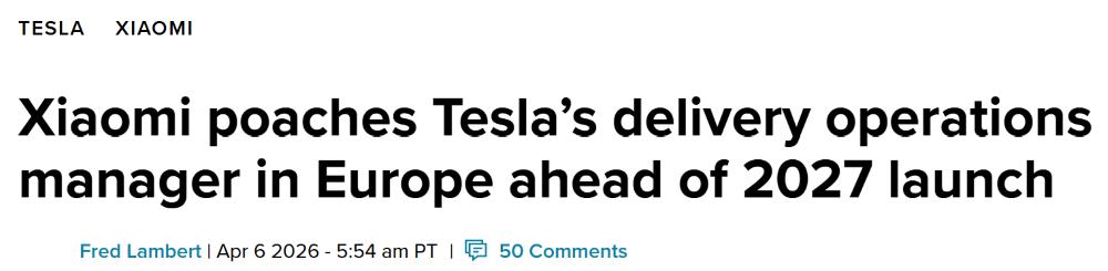 小米加速布局全球市场:一周内多位特斯拉前高管加盟,涵盖欧洲交付与国内制造销售