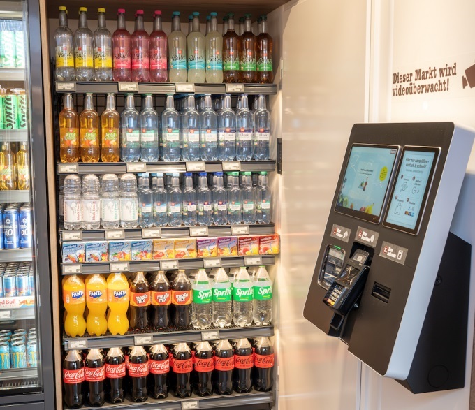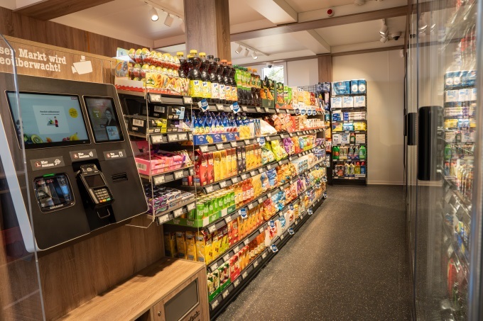 其运营模式也极度简化:顾客进店自由选购,在自助收银机扫码完成无现金支付即可离店。门店一般由附近REWE门店每日或隔日补货,维持基础库存运转。没有员工值守,也就不存在传统的收银、理货、促销等服务,门店更像一个自动运行的零售终端。