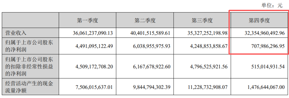 净利润7.08亿元,同比暴跌90.43%。