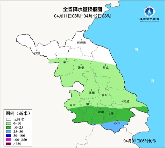 4月9日08时至4月10日08时,淮北北部地区阴转多云,其他地区阴有阵雨或雷雨并渐止转多云,其中苏南地区雨量中等,局部大雨。今天最高温度:苏南地区27~28℃,沿淮和淮北地区19~20℃,其他地区23℃左右;明晨最低温度:沿江和苏南地区15~16℃,淮北地区10~11℃,其他地区13℃左右。全省偏西风,风力:沿江和苏南地区5-6级阵风7级逐渐减弱至4级左右,其他地区4级左右,有雷雨地区雷雨时短时阵风7-9级。