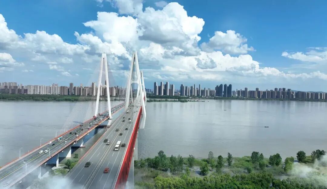武汉白沙洲长江公铁大桥效果图